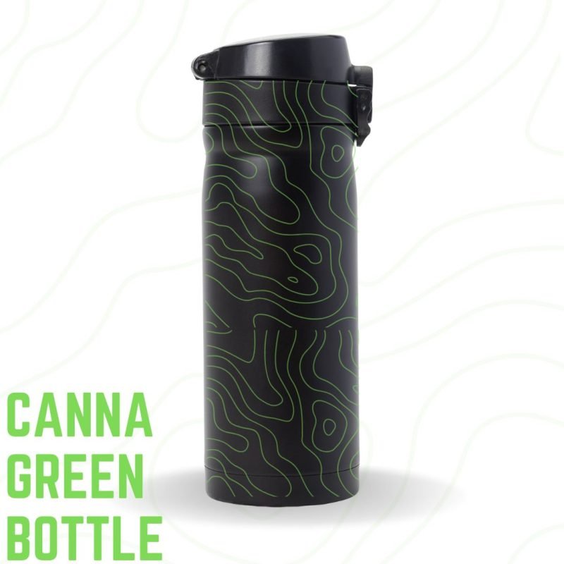Introducing our sleek and stylish 500ml steel bottle, the perfect hydration companion for your active lifestyle. The bottle is coated in a sleek black finish that exudes elegance and sophistication. The abstract green lines swirling around the bottle add a touch of playful character, making it a unique accessory that you can carry with pride.